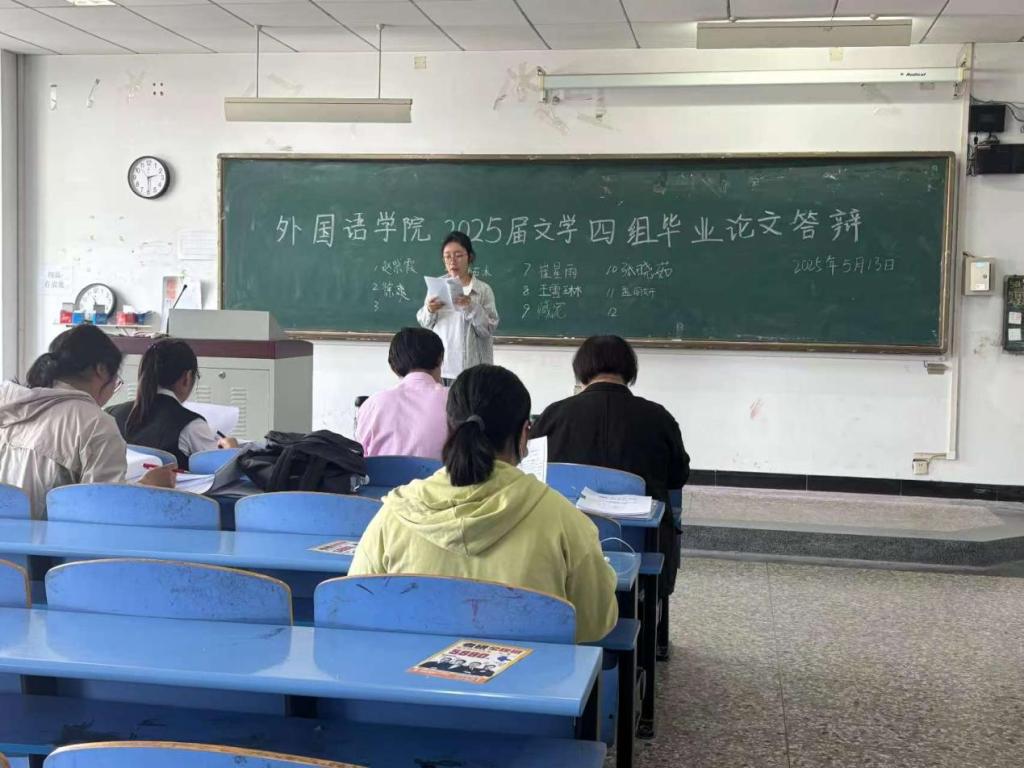 2025年5月13日下午2:30,2025届本科毕业论文答辩正式开始。本届答辩会共设17个答辩组,覆盖英语、日语、德语、商务英语四个专业257名毕业生,由73位老师组成答辩委员会对学生们的学术成果进行全方位检验。