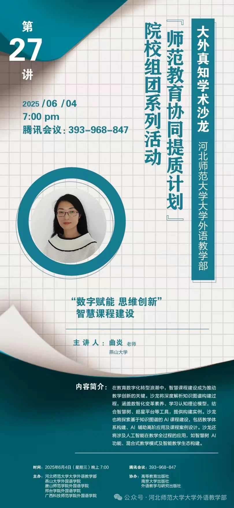 “师范教育协同提质计划”院校组团系列活动之大外真知学术沙龙(第27讲)腾讯会议密码:0604