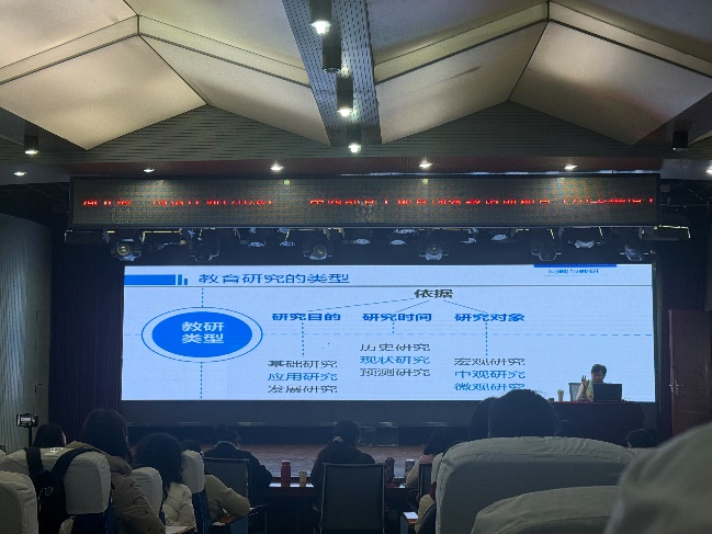 当天下午,河北师范大学副教授、硕士研究生导师,全国第六届教育硕士优秀教师张敬彩教授,以“基于问题的英语教学研究方法”为主题开讲。张教授凭借深厚的学术功底,结合丰富的教学实例,深入讲解行动研究、案例研究等实用教学研究方法,并详细指导教师如何将研究成果转化为教学实践。