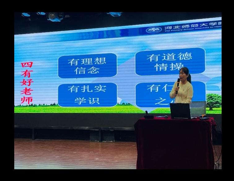 行唐县口头镇秦台明德小学的赵丽华老师饱含深情的向同学们介绍自己从教25年,一直走在圆梦的路上。她勉励同学们要以扎实的学识走上三尺讲台,发挥教育家的精神引领人、温暖人、凝聚人、感召人、教化人。成为一名优秀的教师的秘诀就是撸起袖子加油干,从干中成长,积累经验成就自己。
