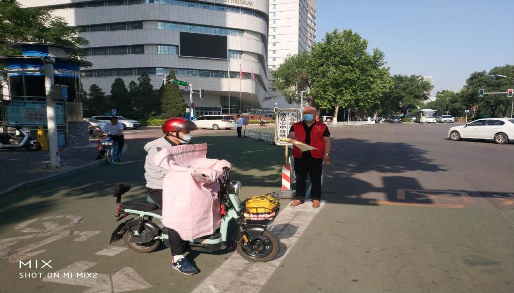 6月7日pg娱乐电子游戏官网入口党员教师在新华道与卫国路道口开展文明交通志愿服务执勤活动。