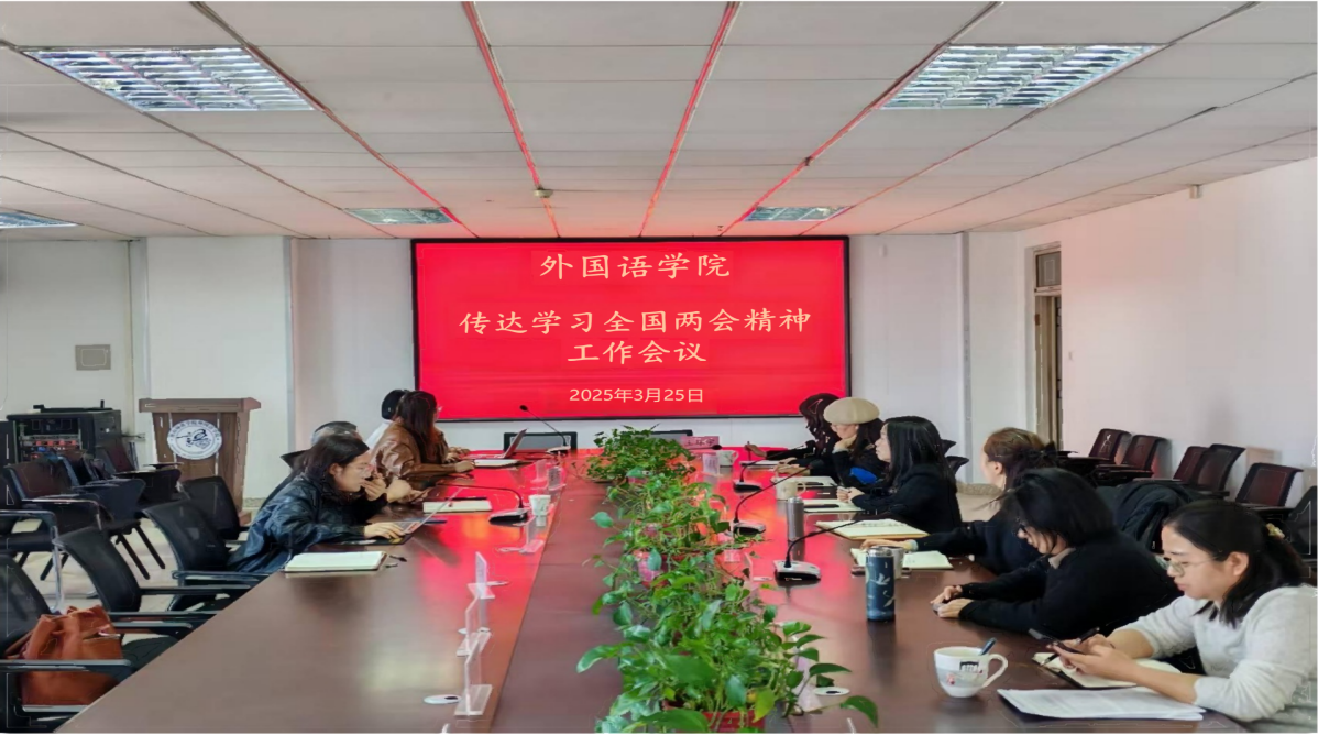 随后,黄静书记带领与会人员共同学习了两会的主要精神,重点解读了政府工作报告中与教育领域相关的内容。报告强调要坚持以人民为中心发展教育,加快建设高质量教育体系,推进教育强国建设。这一要求为学院今后的发展指明了方向。结合学院实际情况,黄书记提出,全体教职工要深刻领会两会精神,将教育强国的使命与自身工作紧密结合起来,广大教师要将两会精神融入课堂教学,实现思政教育与专业教学有机融合不断提升教育教学质量,努力培养具有国际视野、跨文化交流能力和创新精神的高素质外语人才