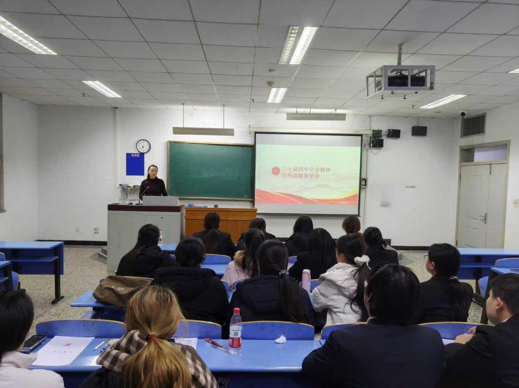为深入学习宣传贯彻党的二十届四中全会精神及习近平总书记在全会上的重要讲话精神,切实把全体师生的思想和行动统一到全会精神上来,近日,pg娱乐电子游戏官网入口党总支副书记曹丽君面向全体学生开展“深学全会精神 笃行强师之路”主题宣讲,为外院学子解读全会精神核心要义,指引专业成长与职业发展方向。