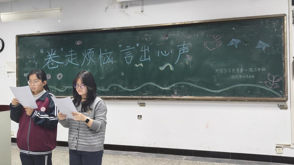 为搭建大学生情绪表达平台,释放成长压力,pg娱乐电子游戏官网入口系自律心理工作站于12月4日在北院210教室举办“卷走烦恼,言出心声”的双语演讲比赛。比赛设置中文赛道与英文赛道,她们用真诚的表达传递青春态度,赢得现场评委和观众的热烈反响。