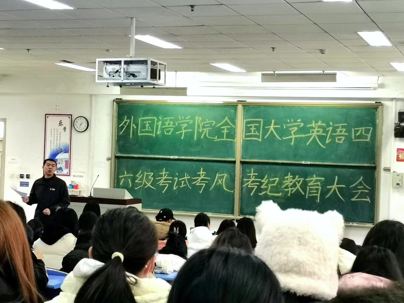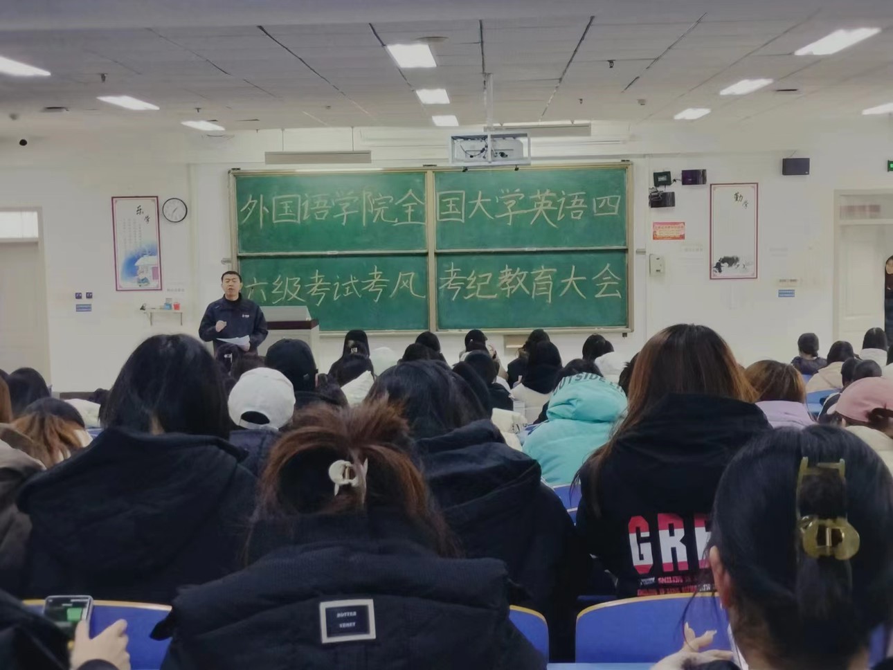除此之外,为了进一步加强全国大学英语四、六级考试的考风考纪教育,提高考试的公平性和规范性,传达考风考纪对四、六级考试的重要意义,提高学生的考试意识,引导全体考生遵守考试规定,营造良好的考试环境,12月15日,pg娱乐电子游戏官网入口于文十阶梯教室召开了考风考纪教育大会。