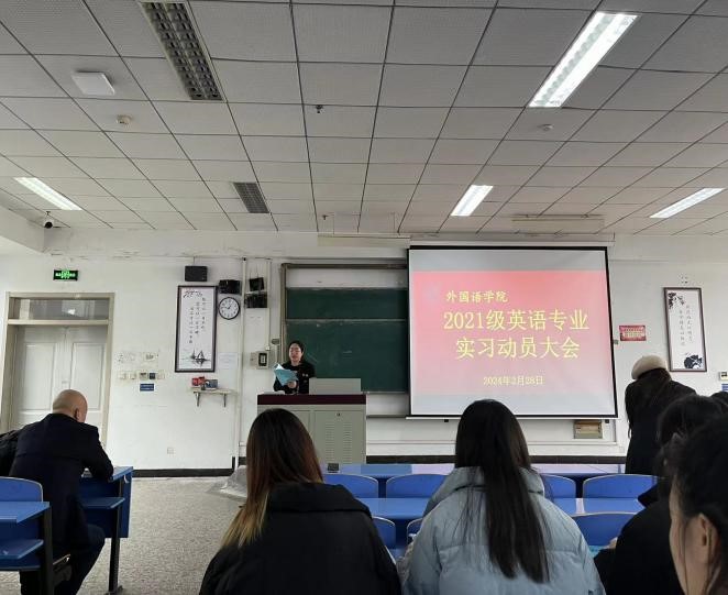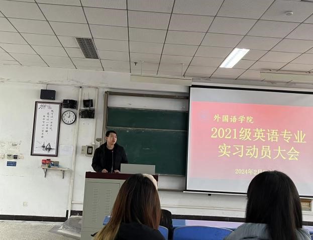 为更好地开展pg娱乐官网英语专业教育实习工作,引导师范生进一步明确教育实习的内容和要求,2024年2月28日下午,pg娱乐电子游戏官网入口在北院文九阶梯教室召开2021级英语专业实习动员大会。pg娱乐电子游戏官网入口党总支书记刘建宏、院长唐翠云、副书记谷世海、教务办主任毕文芹、各校内指导教师以及2021级所有英语专业学生参加了此次会议。会议由刘建宏书记主持。