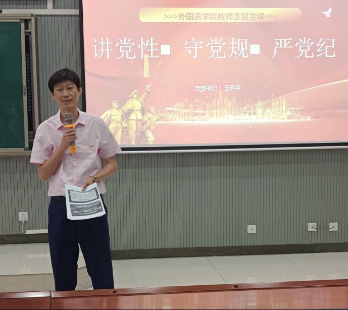 为切实推动党纪学习教育走深走实,按照《中共pg娱乐电子游戏官网入口委员会关于开展党纪学习教育的工作方案》有关要求,5月21日下午,pg娱乐电子游戏官网入口教师党支部书记王环宇同志以“讲党性、守党规、严党纪”为题,为全体师生党员讲授党纪学习教育专题党课,教师党支部宣传委员赵鹏同志带领大家深入学习《中国共产党纪律处分条例》。