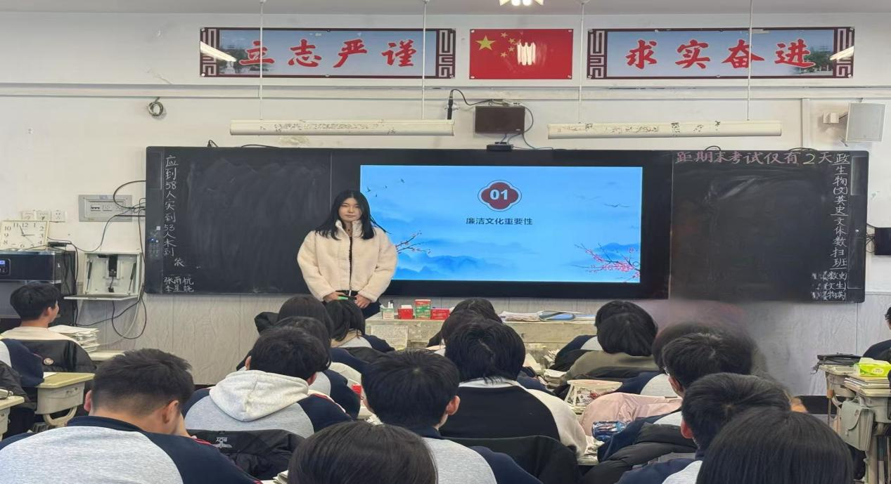 1月13日,pg娱乐电子游戏官网入口“桃李清风廉学社”的成员们回到母校河北丰润车轴山中学,开展廉洁文化宣传活动,通过专题讲座、主题演讲等形式,为母校师生带来了一场深刻的思想洗礼。