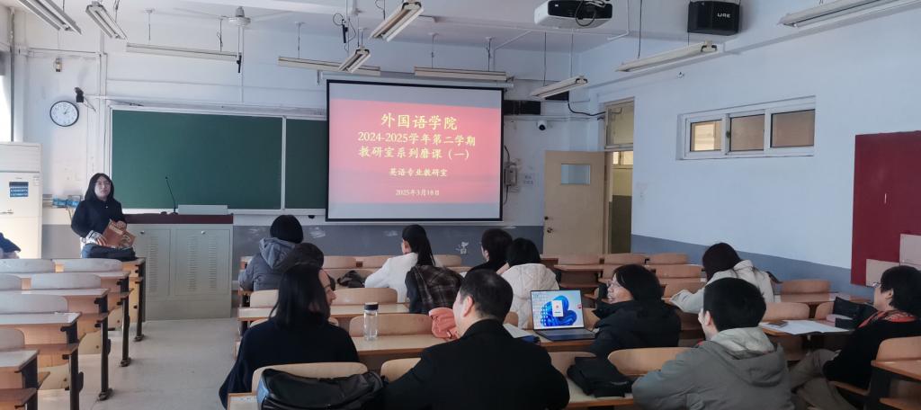 2025年3月18日,pg娱乐电子游戏官网入口英语专业教研室在3204教室举办全英授课磨课教研活动。本次活动由教研室主任李景峰主持,英语专业全体教师及大学英语教研室部分教师参与旁听,聚焦《英语写作3》课程设计与教学实践,通过示范授课、互动研讨等形式深化教学方法交流,同时展现教师语言素养与专业功底。