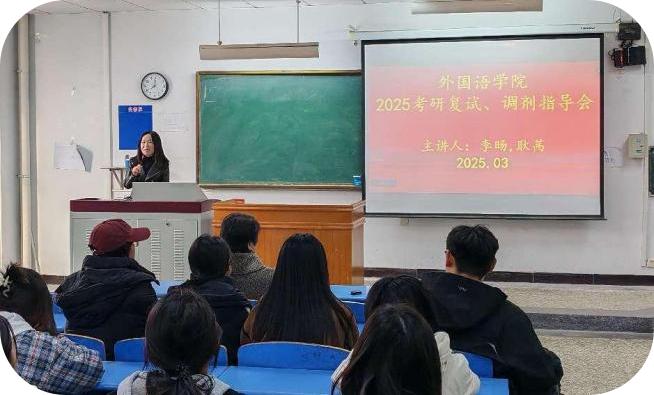 在问答环节,两位老师耐心解答了同学们的疑问,提供了针对性的建议。参会同学表示,此次指导会内容充实、针对性强,对复试的准备方向、答题技巧以及心理调适等方面具有一定的指导意义,希望能将所学知识更好地运用于复试过程中。
